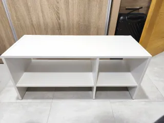 Mueble bajo de diseño moderno, ideal para colocar tu televisión y organizar tus dispositivos. - Dos compartimentos abiertos. - Superficie amplia para TV y accesorios. Poco uso, está como nuevo.