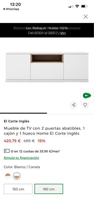 Mueble TV El Corte Inglés 180cm Blanco/Canela