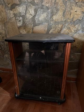 Mueble vitrina y cajón madera y cristal