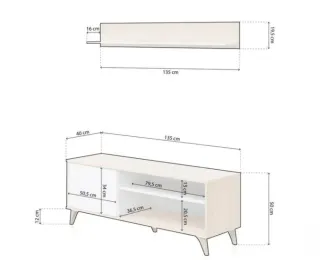 Preciosa unidad de mueble de TV Kikua plus 6616 con estante a juego. - Mueble TV con valda y puerta con sistema Push mas un estante superior - Diseño moderno y elegante.