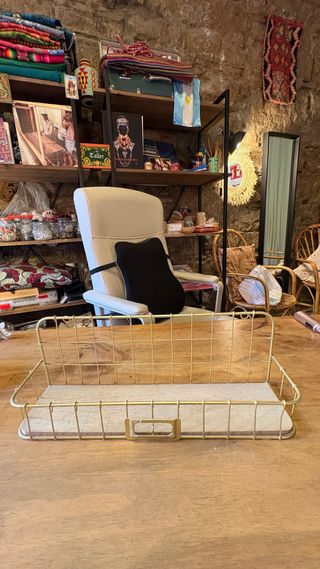 4 Elegantes expositores de metal con acabado dorado, perfecto para organizar y exhibir productos. - Estructura de alambre resistente. - Ideal para mostradores o estanterías. Cada uno cuesta 10€ o el lote por 40€ A retirar en mi tienda del barrio gotico