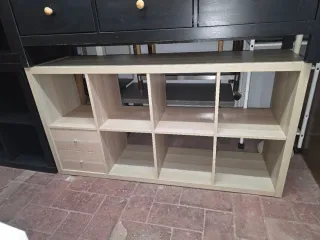 Mueble de madera con compartimentos y cajones. - Diseño moderno en tonos beige y negro. - Ideal para organizar tu espacio de entretenimiento. Puede venir a verlos , Es una tienda , se llama Nuestra segunda mano . Carrer de la lluna 25 08001 , Barcelona . A 3 minutos caminando de placa universidad Es calle ancha , fácil para aparcar delante Hacemos envíos económicos pregúntame 631725223