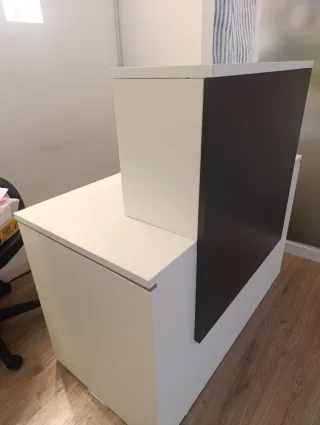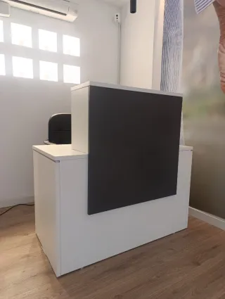 Vendo mostrador de recepción modelo NEW 60, totalmente nuevo en caja y sin montar. Lo compré para mi negocio pero me equivoqué de color y no puedo devolverlo. 💰 Precio pagado: 356,42 € (con factura) 💸 Precio: 300 € negociables ⚠️ En las fotos del fabricante aparece blanco con frontal gris claro, pero el que vendo es completamente gris (gris Sombra). Como en la imagen 3. ⏳ Normalmente tarda cerca de 1 mes en fabricarse y enviarse, así que este está disponible para entrega inmediata. Medidas mostrador: 160 × 60 × 74 cm Frontal: 120 × 80 × 30 cm Ideal para recepción, tienda, clínica, estética o peluquería.