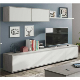 Mueble de salón 200 cm. Cemento y Blanco Artik