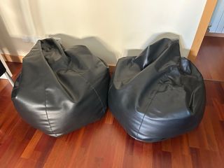 Par de puffs modernos de cuero sintético. - Diseño elegante y contemporáneo. - Comprados tienda LaOca en Pamplona.