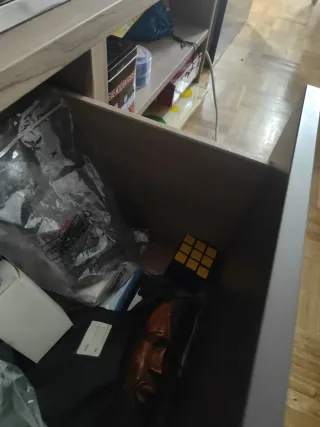 Mueble de almacenamiento de IKEA, acabado brillo, en blanco y wengué oscuro, con una combinación de puertas y cajones. Medidas: Alto: 147cm Ancho: 76cm Profundo: 39cm Precio original con las puertas de cristal: rondando 300€ Se puede poner vertical u horizontal. Si lo pones horizontal, se verá un pequeño desperfecto en un lateral de un tornillo clavado durante la mudanza, aunque apenas se ve. Si lo pones vertical, no se aprecian defectos. Se le ha dado muy poco uso. Solo venta en persona en Puente de Vallecas. Se puede ver sin compromiso.
