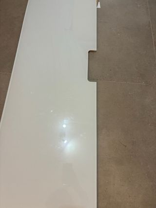 Se vende mueble de Ikea para la televisión. Se entrega montado. Consta de una parte abierta y de una cerrada con puerta dondd dentro hay uja estantería. La parte de arriba del mueble es avidriada (como se ve en la foto), la puerta que tiene es satinada, y el resto es blanco mate. Las patas son regulables. Tiene dos desperfectos, el primero las patas hay que eliminarles el óxido (imagen adjunta) y el segundo es que en la parte interior del armario, donde las bisagras, la madera se ha desteñido ligeramente (ver última foto). Del resto, no hay ningún otro desperfecto. Se entrega montado.
