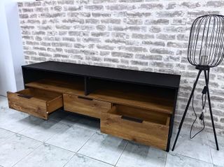 Mueble de madera con un diseño moderno y funcional, ideal para tu salón. - Dos cajones amplios para almacenamiento. - Compartimento abierto central. Medidas Largo- 160cm Ancho- 60cm Altura- 55cm Recojer en Azuqueca de Henares