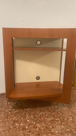 Mueble de TV en buen estado, con un diseño elegante y funcional. - Acabado en madera de color marrón. - Puertas con cristal translúcido. - Amplio espacio de almacenamiento. Vivo en valencia capital código postal 46018
