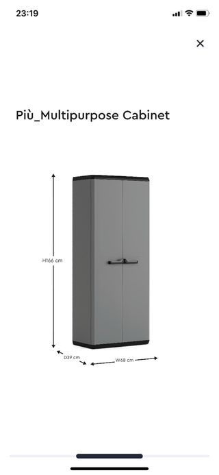Armario de gran capacidad, de plastico color gris Facil de montar Esta nuevo sin estrenar Va en su caja - Alto: 166 cm - Ancho: 68 cm - Profundidad: 39 cm