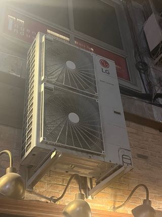 Unidad exterior de aire acondicionado LG tipo techo casette Tenemos dos unidades, precio unidad Se encuentran instalados hay q desnontarlos Con 4 alos de anyiguedad - Diseño moderno en color blanco y gris. - Fabricado con materiales resistentes de metal y plástico