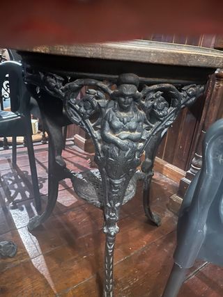 Mesas con base de forja y tablero de madera, de estilo irlandés. 6 unidades precio unidad - Diseño ornamental en la base. - Combinación de materiales robustos.