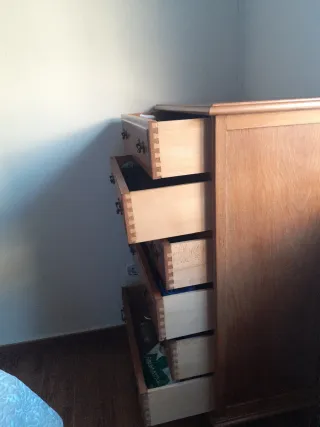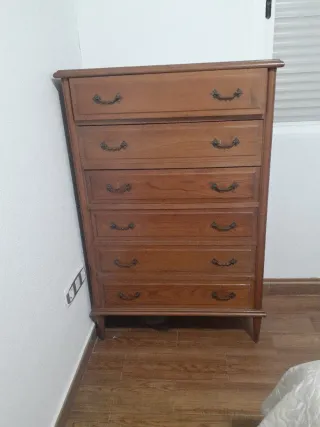 Conjunto de muebles de madera que incluye una cómoda alta y una mesita de noche. - Cómoda con múltiples cajones. - Mesita de noche con varios cajones. Hay otra cómoda disponible, si te interesa en el pack pregunte por el chat