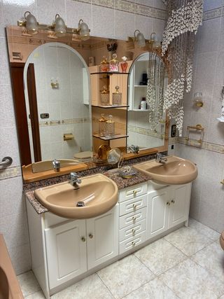 Se vende baño completo vintage de la marca ROCA, en perfecto estado de conservación, ideal para amantes del estilo clásico, restauraciones o segundas viviendas. Incluye: • Bañera vintage ROCA 1,83x 1,08 • lavabos con mueble y encimera 66x49 • WC ROCA (se regala, la tapa está un poco pelada) • Bidé ROCA • Espejos 1,80 de ancho • Muebles de almacenaje 1,80 • Grifería original • Toalleros y accesorios 📦 Se vende el conjunto completo Precio negociable, entrega en mano.