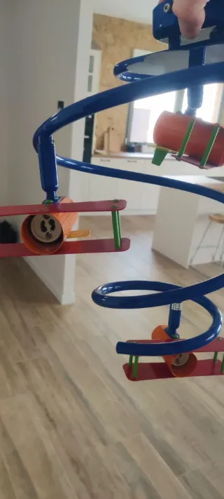 Original lámpara de techo con un divertido diseño de aviones. Perfecta para una habitación infantil. - Estructura principal en color azul. - Aviones decorativos en color naranja y rojo.