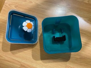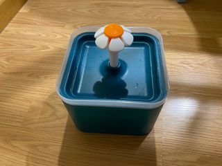 Fuente de agua para mascotas con diseño de flor. - Dispensador automático de agua. - Color verde azulado y blanco. Le falta la bomba de agua.