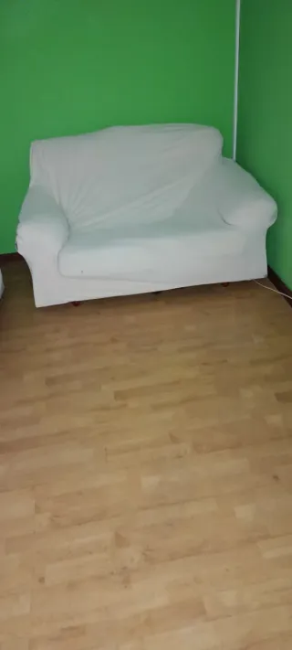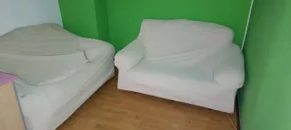 Conjunto de salón cubierto con funda blanca. - Funda de tela elástica. - Color blanco.