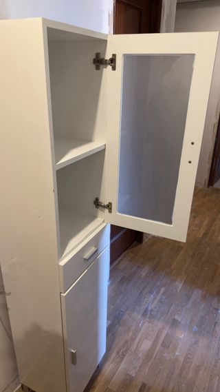 Mueble de baño blanco con puerta de cristal
