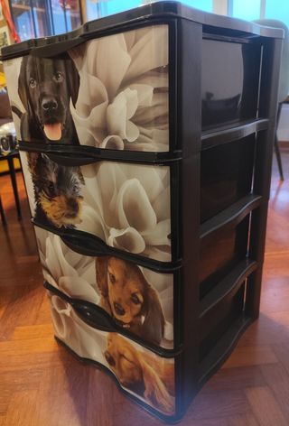 Cajonera de plástico con estampado de cachorros. Ideal para organizar cualquier espacio.