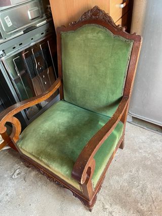 Sillón antiguo de terciopelo y madera