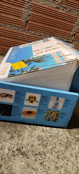 Kit de ducha portátil eléctrico para exteriores. - Ideal para camping, caravanas o viajes. - Incluye manguera y cabezal de ducha.