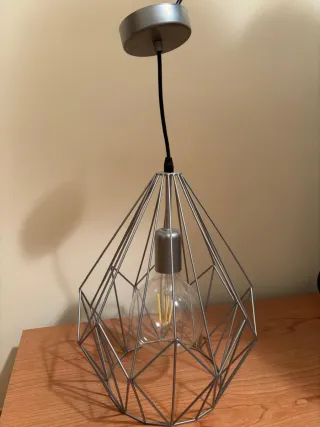 Lámpara colgante con un diseño moderno y geométrico. - Estructura de metal en forma de jaula. - Bombilla de cristal transparente con filamentos LED.