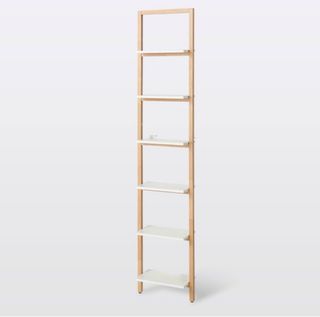 Estantería de diseño Nantua con estructura de madera y baldas blancas. Ideal para organizar tus objetos. - Diseño moderno y funcional. - Combina madera y blanco.