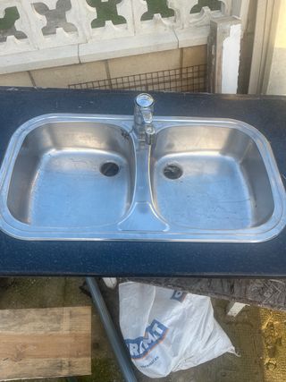 Fregadero de cocina con dos pozos. - Fabricado en acero inoxidable. - Diseño moderno en color negro y plateado.