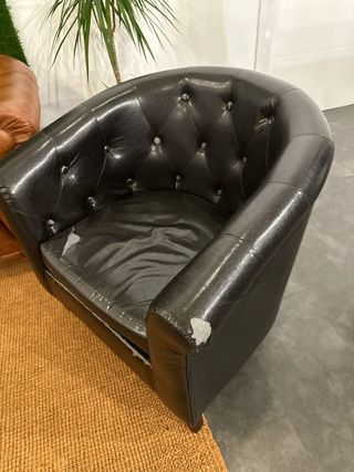 Elegante butaca de piel con un diseño clásico y confortable. Aporta un toque de distinción a cualquier espacio. - Tapicería capitoné. - Patas robustas.