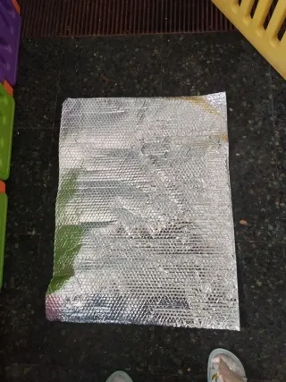 Material de aislamiento térmico con acabado de aluminio y burbujas. - Rollo de aislamiento reflectante. - Ideal para diversas aplicaciones de aislamientos. Doble capa i saco bolsa. Múltiples usos térmicos y aislantes para traslados de alimentos fríos, o aplicar en coches, caravanas, camping, paredes, techos. Multifuncionales. Pide cuántas quias o necesitas. Se hacen envíos.