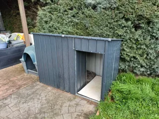 Caseta espaciosa para perros, ideal para exteriores. - Material resistente. - Diseño de dos piezas.