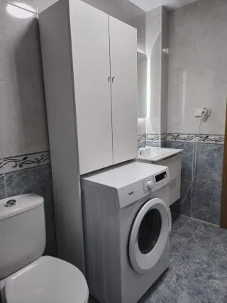Armario de madera diseñado para colocar sobre la lavadora. - Color blanco. - Diseño moderno y funcional.