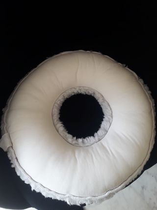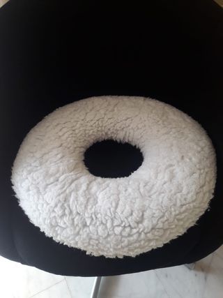 Almohada redonda con un diseño moderno y acogedor. - Material exterior de peluche suave. - Relleno confortable.