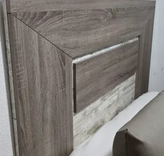 Conjunto de cabecero y dos mesitas de noche en perfecto estado. Un diseño moderno que aportará estilo a tu habitación. - Cabecero con detalles en madera. - Mesitas de noche a juego.