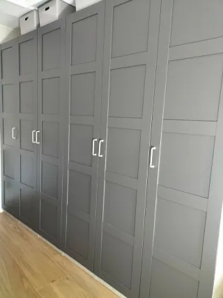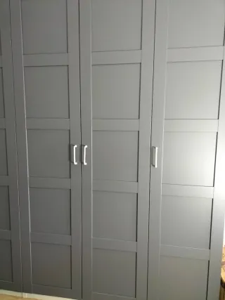 Se venden 6 puertas de armario modelo Bergsbo de Ikea, en color gris. Incluyen sus tiradores. 20€ cda. 1 mes de uso - Diseño panelado. - Acabado mate.