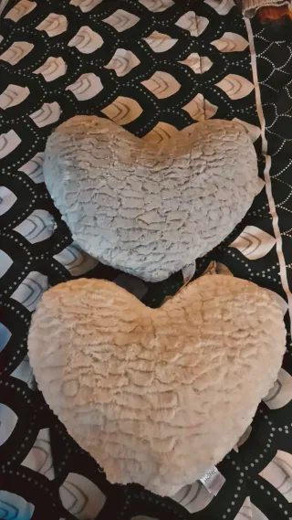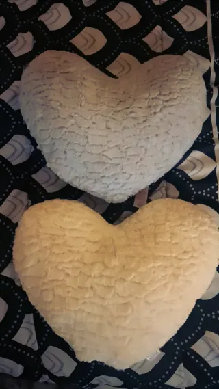 Set de dos cojines decorativos con forma de corazón. Son suaves y agradables al tacto. - Diseño en forma de corazón. - Textura mullida.