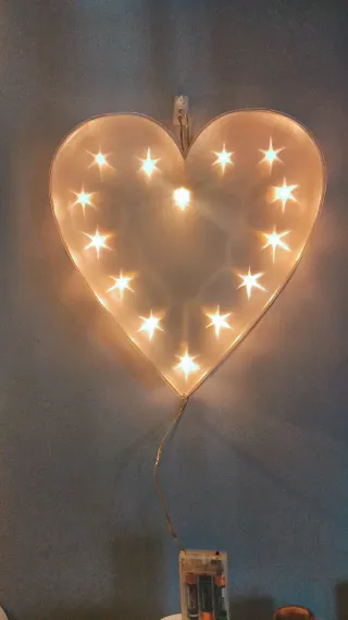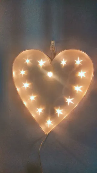 Precioso corazón luminoso con un diseño único. Añade un toque especial a cualquier espacio. - Decoración en forma de corazón. - Luces integradas para un ambiente cálido.