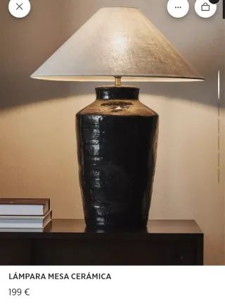 Elegante lámpara de mesa con base de cerámica y pantalla de tela. - Base de cerámica con acabado texturizado. - Pantalla cónica de tela. - Diseño moderno y sofisticado.