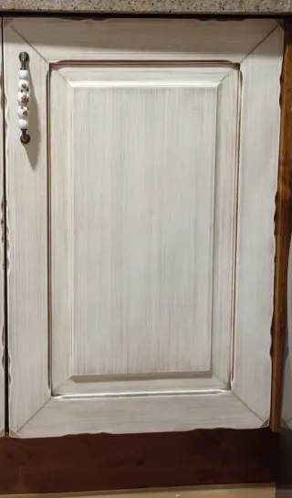Conjunto de puertas y frontales de cajones con un diseño rústico y elegante con herrajes pero sin tiradores. - Estilo vintage que aporta calidez a la cocina. Se venden en conjunto o por separado. Precio negociable