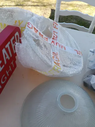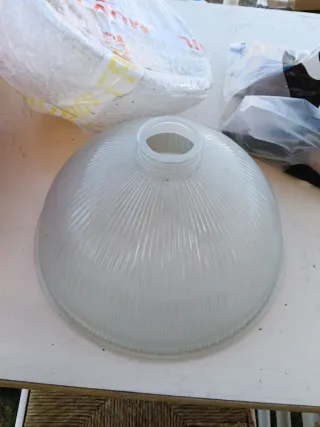 Tulipas de repuesto para lámparas antiguas. Tienen un diseño acanalado que difumina la luz. 70 euros las tres - Material: Vidrio y plástico. - Color: Transparente y blanco.