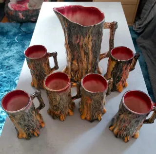 Juego Jarras Cerveza Cerámica Tronco Árbol