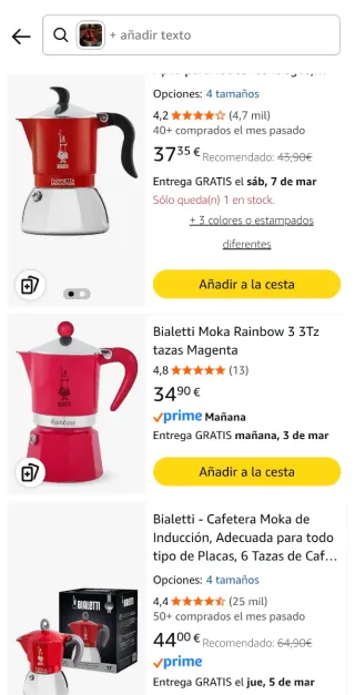 Cafetera Bialetti Rainbow Roja de 3 tazas