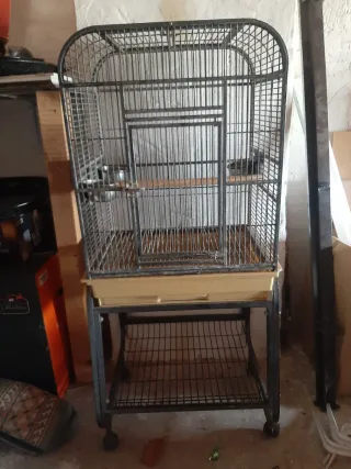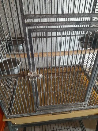 Jaula metálica para pájaros. - Estructura de alambre. - Bandeja inferior. - Puerta de acceso.