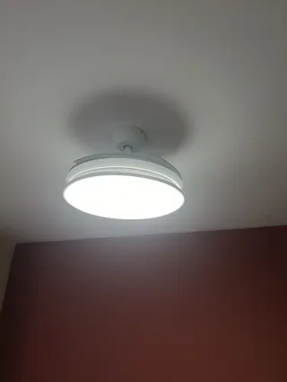 Lámpara de techo con función de ventilador. Su diseño circular y moderno se adapta a cualquier estancia. - Acabado en plástico.