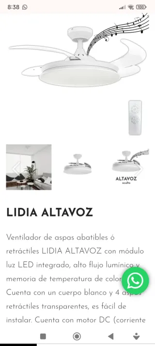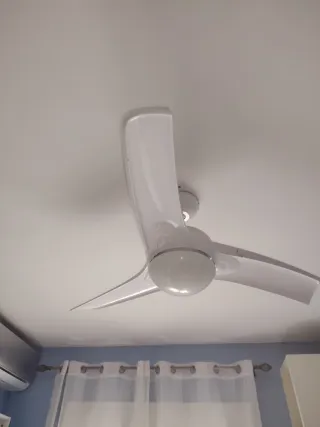 Ventilador de techo moderno con un diseño elegante. El mando falta la tapa. Pero funciona perfectamente - Acabado en blanco brillante. - Incorpora luz central. - Tres aspas aerodinámicas.
