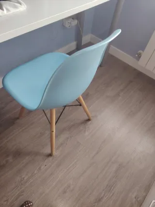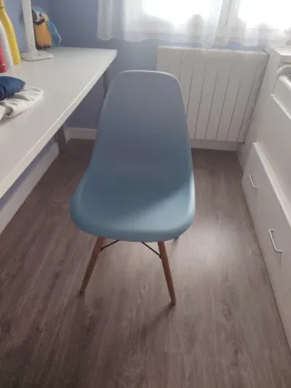 Silla azul de plástico y madera