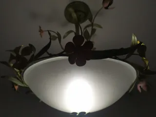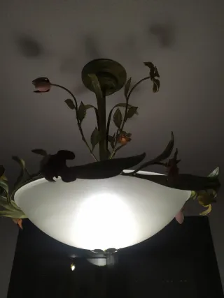 Elegante lámpara de techo con un diseño floral que aporta un toque de color y naturaleza a tu hogar. Su estructura metálica y detalles en cristal la hacen una pieza única.mejor verlo no hago envíos. - Diseño floral. - Acabado multicolor.