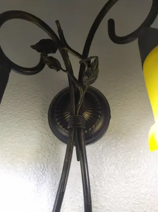 Elegante aplique de pared con un diseño floral.mejor verlo no hago envíos - Estructura principal en metal negro. - Tulipanes de cristal en color amarillo. - Dos luces.