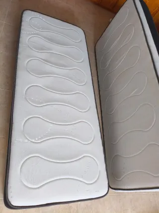 Dos colchones de tela en buen estado, listos para darles una segunda vida. - Medidas: 80x200 cm cada uno. - Diseño acolchado con líneas curvas. Primera foto son de tienda de muebles. Segunda foto son de Ikea. 20€ la unidad