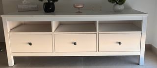 Cajonera de la serie Hemnes de Ikea. Un mueble práctico y elegante para organizar tus pertenencias. 130x50x40 cm - Estructura principal de madera pino - Acabado en color blanco - Tiradores de madera.